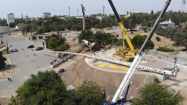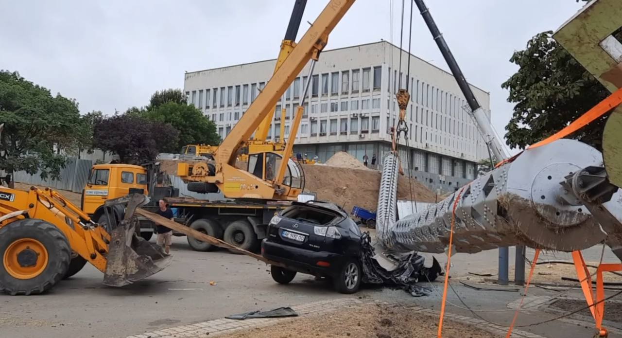 Поставленный в Херсоне флагшток упал, раздавив "лексус" чиновника, который руководил его установкой.