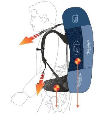 В рекламе производителей утверждается, что противооткид очень даже работает, что главная его задача - притянуть верхнюю часть рюкзака как можно ближе к спине. Очень хочется верить, но законы физики говорят обратное. Система формирования спины, силовой каркас и плотная укладка задают рюкзаку очень жесткую форму. Изменить ее противооткидом невозможно.
